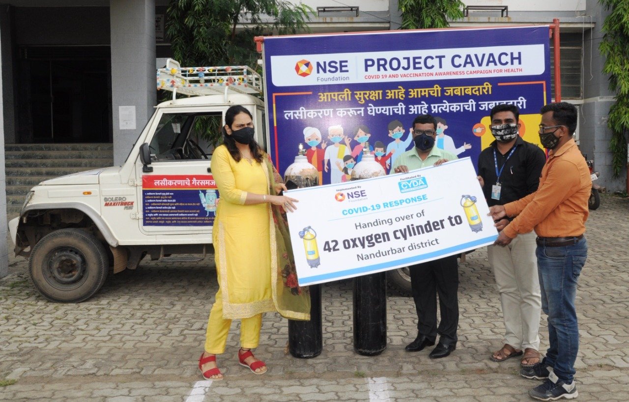 नंदुरबार : नॅशनल स्टॉक एक्स्चेंजतर्फे सामाजिक उत्तरदायित्व निधीच्या माध्यमातून जिल्ह्यासाठी देण्यात आलेले 42 जम्बो ऑक्सिजन सिलेंडर जिल्हाधिकारी मनीषा खत्री आणि जिल्हा शल्य चिकीत्सक डॉ.रघुनाथ भोये यांचेकडे सुपूर्द करण्यात आले. नॅशनल स्टॉक एक्स्चेंज आणि सीवायडीएच्या माध्यमातून कोविड रिलीफ कार्यक्रमांतर्गत हे सिलेंडर देण्यात आल्याची माहिती सीवायडीएचे अमोल शेवाळे यांनी यावेळी दिली.