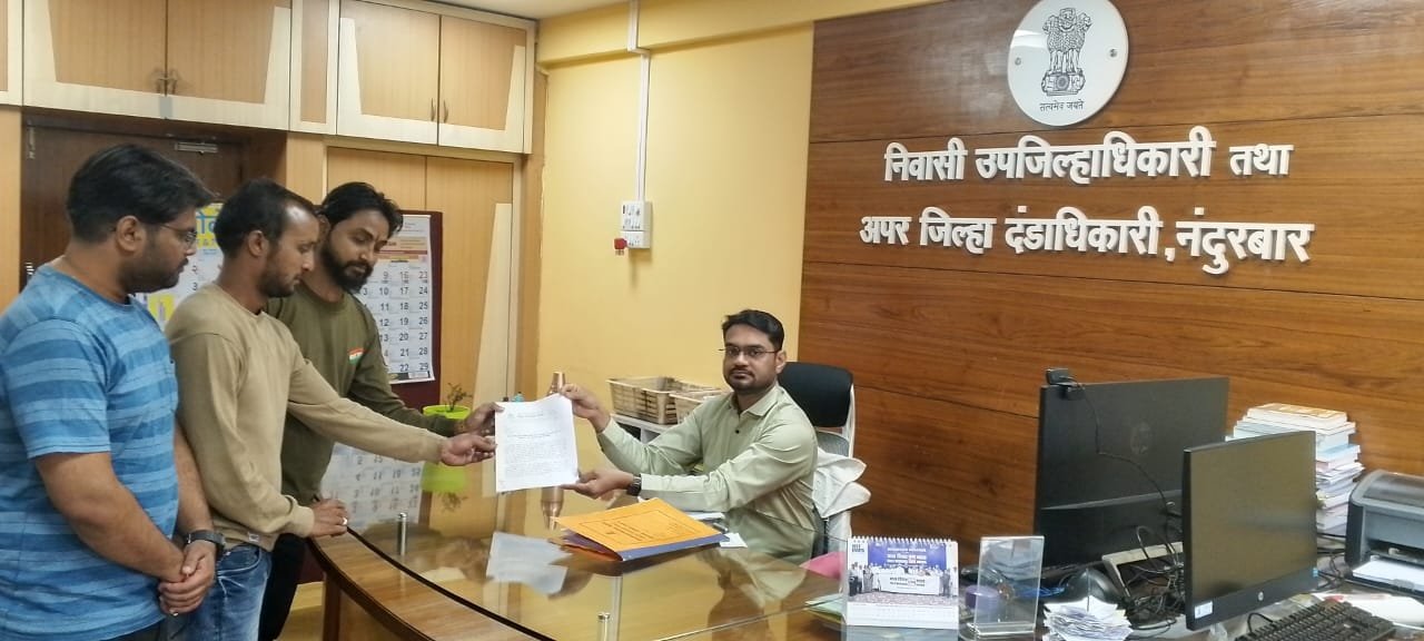 नंदुरबार येथे जिल्हाधिकारी कार्यालयातील निवासी उपजिल्हाधिकारी श्री. हरीश भामरे यांना सदर निवेदन देण्यात आले. या वेळी समितिच्या वतीने सर्वश्री सुमित परदेशी, जितेंद्र मराठे व हर्षल देसाई हे उपस्थित होते.