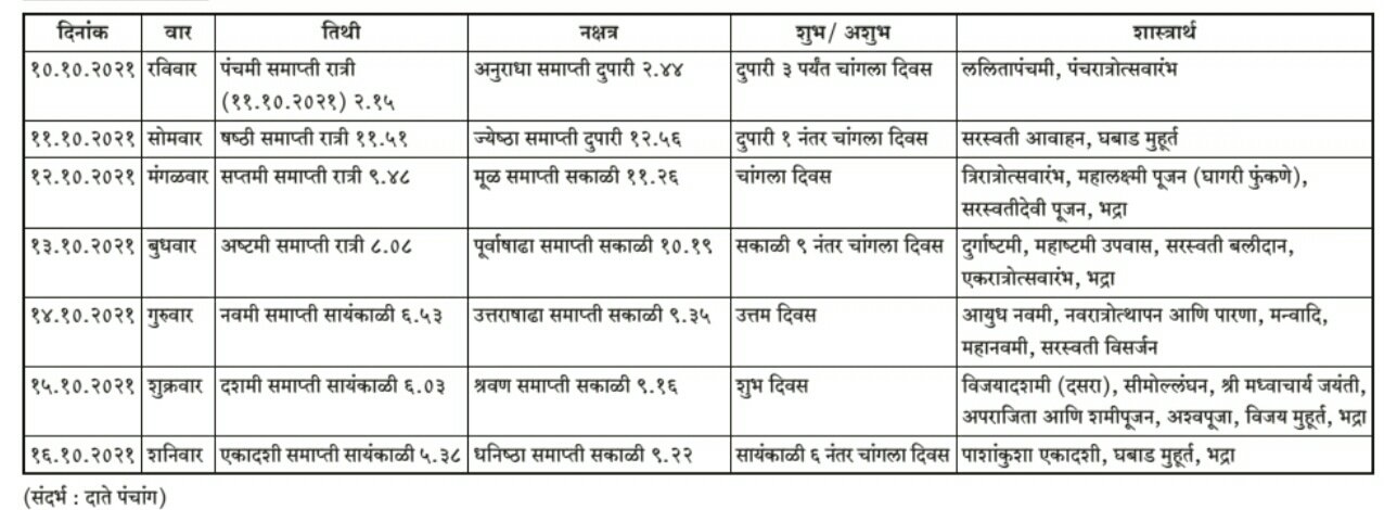 हिंदू धर्मशास्त्रानुसार  ‘प्लव’ नाम संवत्सर, शालिवाहन शक, 1943 दक्षिणायन, शरद ऋतू, आश्विन मास आणि शुक्लपक्ष चालू आहे.