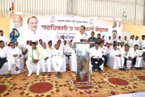 नंदुरबार – जलजीवन मिशन ठेकेदारांच्या सोयीसाठी चालविलेली योजना असून मोठ्या प्रमाणावर यात भ्रष्टाचार आहे. घरकुलाबाबतही प्रशासनाचे दुर्लक्ष असल्याने खरे लाभार्थी वंचित राहताहेत. शिवाय, मागील दोन वर्षात नंदूरबार जिल्ह्यात सुमारे दीड हजारांहून बालमृत्यू व मातामृत्यू झाले आहेत. देश अमृत महोत्सवी वर्ष तर नंदुरबार जिल्हा निर्मितीची रौप्य महोत्सवी वर्ष साजरा करत असतांना येथील अशा अनेक समस्या अजूनही सुटलेल्या नाहीत, असा घणघात करीत विरोधी पक्ष नेते अजित दादा पवार यांनी नंदुरबार जिल्ह्यातील राष्ट्रवादी काँग्रेसच्या कार्यकर्त्यांना आणि महाविकास आघाडीच्या घटक पक्षांना जोमाने एकत्रित लढण्याचे आवाहन केले.