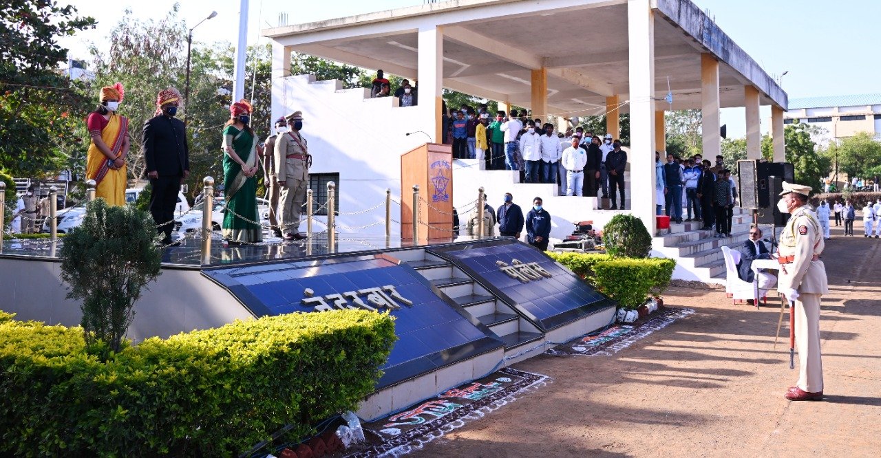 नंदुरबार : भारतीय प्रजासत्ताक दिनाच्या 72 व्या वर्धापन दिनानिमित्त जिल्हाधिकारी मनीषा खत्री यांच्या हस्ते पोलीस कवायत मैदानावर मुख्य शासकीय ध्वजारोहण करण्यात आले.