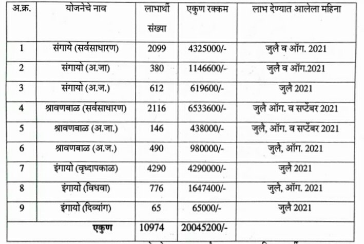 जमा करण्यात आलेल्या धनादेशानुसार लाभार्थ्यांचे योजनानिहाय अनुदान खालीलप्रमाणे असणार आहे.