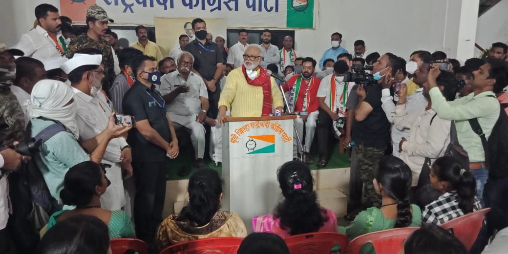 धुळे येथे आज शनिवार दि. 25 सप्टेंबर रोजी राष्ट्रवादी भवनात कार्यकत्यांचा मेळावा घेण्यात आला. या मेळाव्याला सभागृहात एकच गर्दी झाली. मंत्री छगन भुजबळ यांचे आगमन होताच कार्यकर्त्यांनी मंचाच्या दोन्ही बाजूला मोठा गराडा घालून खुर्च्यांवर उभे रहात फोटोसेशन सुरु केले. गोंधळ होत असल्याने आयोजकांना स्वागतपर भाषण, काही पदाधिकाऱ्यांचे मनोगत तसेच सुत्रसंचालकाचे बोलणे याला कात्री मारावी लागली. चाललेला गोंधळ पाहून मंत्री भुजबळ काहीसे वैतागले आणि त्यांनी थेट स्वतःच माईक हातात घेवून बोलण्यास सुरुवात केली. भाषणामुळे आणि भुजबळ यांच्या कसदार टोल्यांमुळे गोंधळ बराच नियंत्रित झाला. पण अर्धातास भाषण झाल्यानंतर नवीन पदाधिकाऱ्यांना नियुक्तीपत्र देण्याचा कार्यक्रम घेाषित होताच पुन्हा सभागृहात गोंधळ माजला. आयोजकांना अखेरीस कार्यक्रम आवरता घ्यावा लागला, असे प्रत्यक्षदर्शींनी सांगितले.