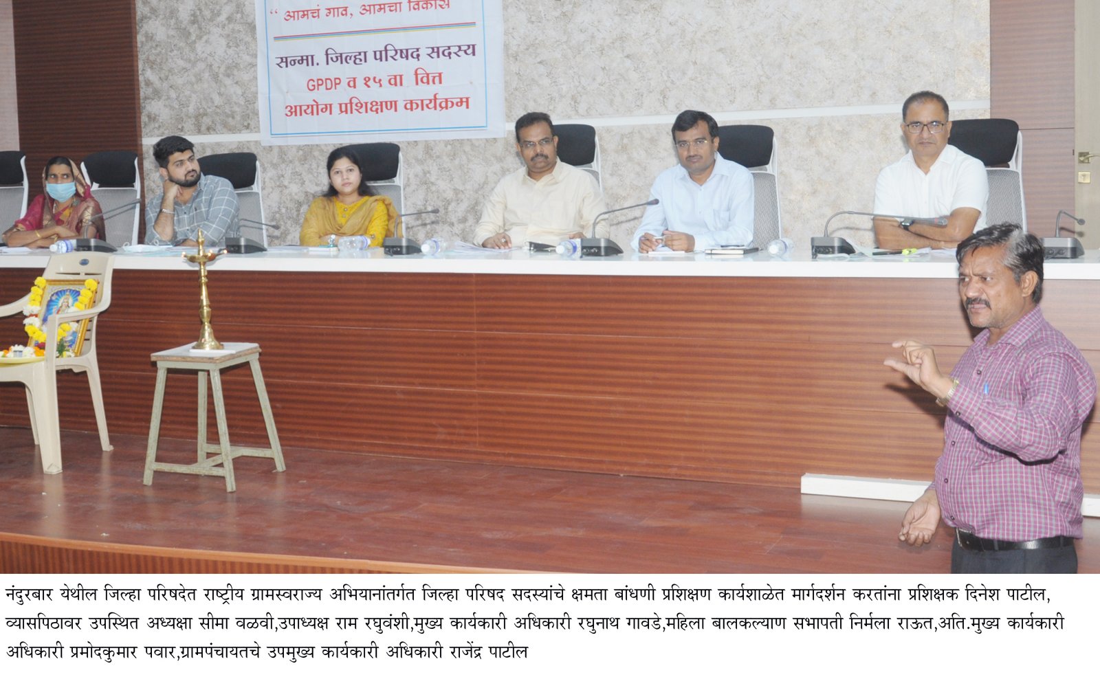 नंदुरबार – येथील जिल्‍हा परिषदेच्‍या याहा मोगी सभागृहात राष्ट्रीय ग्रामस्वराज्य अभियानातंर्गत, नव्याने आलेल्या जिल्हा परिषद सदस्याचे क्षमता बांधणी प्रशिक्षण कार्यक्रम व 15 वा वित्त आयोग अंतर्गत जि.प.स्तर विकास आराखडा तयार करणेकामी आयोजित कार्यशाळेचे उद्घाटन जिल्‍हा परिषद अध्‍यक्षा अॅड.सीमा वळवी यांच्‍या हस्‍ते करण्‍यात आले.