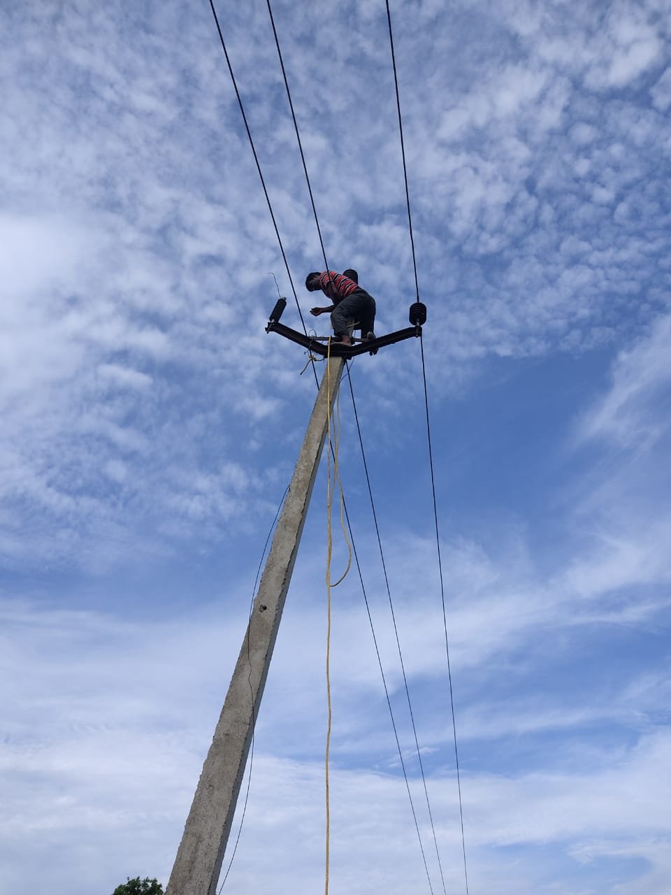 शनिवारी पहाटे ५ वाजेपासून पाचोरा – भडगाव परिसरात प्रचंड वादळी पाऊस व विजेच्या कडकडाट होता. त्यातच पाचोरा ते भडगाव या ३३ केव्ही उच्चदाब वाहिनीवर वीज पडल्यामुळे बिघाड झाला. त्यामुळे भडगाव, लोण पिराचे व वडजी ही तीन उपकेंद्रे बंद पडली आणि भडगाव तालुक्यातील जवळपास १० ते १२ हजार ग्राहकांचा वीजपुरवठा खंडित झाला. पाचोरा ते भडगाव या विद्युत वाहिनीचे अंतर १४ किमी आहे. बंद पडलेल्या ३३ केव्ही वाहिनीवर झालेला नेमका बिघाड शोधून तो दुरुस्त करणे जिकिरीचे होते आणि त्यासाठी वेळी लागणार होता. त्यामुळे महावितरणच्या कर्मचाऱ्यांनी पर्यायी मार्गाने दुपारी अडीच वाजेपर्यंत ग्राहकांचा वीजपुरवठा पूर्ववत केला. मात्र पर्यायी व्यवस्था ही तात्पुरती असल्याने बंद पडलेली वाहिनी सुरू करणे आवश्यक होते. मात्र रानावनातून जाणाऱ्या वाहिनीवरील बिघाड शोधणे सोपे नव्हते. पावसामुळे सर्वत्र पाणीच पाणी आणि चिखल झालेला. मात्र प्रतिकूल परिस्थितीचे आव्हान स्वीकारून आजच ही वाहिनी सुरू करायची असा चंग बांधून महावितरणचे कर्मचारी कामाला लागले. अक्षरश: चिखल तुडवत आणि ओढे-नाल्यांतील पाण्यातून वाट काढत त्यांनी बिघाड शोधण्यास सुरुवात केली. वाहिनीवरील प्रत्येक खांबावर चढून त्याचे इन्सुलेटर तपासले. तेव्हा