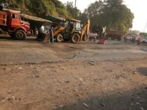 त्या ठिकाणाहून चौफुलीच्या दिशेने येतांना सिमेंट कॉंक्रिटचा रस्ता लागतो. कोटी रुपये खर्चून दोन वर्षापूर्वी बनवलेल्या या रस्त्याला आताच फुटा-फुटाचे खड्डे पडून चाळण बनायला सुरुवात झाली आहे. या रस्त्याचा अर्धाभाग कायम नादुरुस्त वाहनांनी अडवलेला असतो. जणू सर्व गॅरेजवाल्यांना हा रस्ता आंदण दिला आहे. अनेक प्रकारची जड वाहतूक झेलणार्या धुळे चौफुलीवर अनेक महिन्यांपासून मोठ मोठे खड्डे पडलेले आहेत. शहरवासीयांना जड वाहनांमधून जीवघेणी कसरत करीत धुळ झेलत तिथून निघावे लागते. संबंधीत विभागाने कधीच हे लक्षात घेतले नाही. तथापि चौफुलीवर भेळविक्रीच्या गाड्या उभ्या राहतात त्या ठिकाणचे खड्डे बुजवायला आज नगरपालिकेने सुरुवात केली. नगरपालिका हद्दीत तेवढेच येतात म्हणून तेवढेच दुरुस्त होणार आहेत. पण तिथून शंभर फुटांवर अंबिका कॉलनी लगत पडलेले खोल खड्ड्यांचे काय? हा प्रश्न तसाच आहे. कारण राष्ट्रीय महामार्गाचे अधिकारी त्याची दखल घ्यायलाच तयार नाहित. या खड्ड्यांनी रस्त्याची लेवल इतकी बिघडवली आहे की, माल भरलेला ट्रक उलटण्याची घटना या ठिकाणी कधीही घडू शकते. याची किंमत स्थानिक कॉलन्यांमधील नागरिकांना अधिक मोजावी लागत आहे व जीव टांगणीला ठेऊन ये-जा करणे भाग पडत आहे. तांत्रिक कारणं काहीही असोत लोकांना सुविधा द्यायला हवी, असे असतांना आमदार, खासदार आणि नगरसेवक अशा बाबतीत आपली धमक का दाखवत नाहित? हा प्रश्न त्या भागातील संतप्त लोकांनी उपस्थित केला आहे.