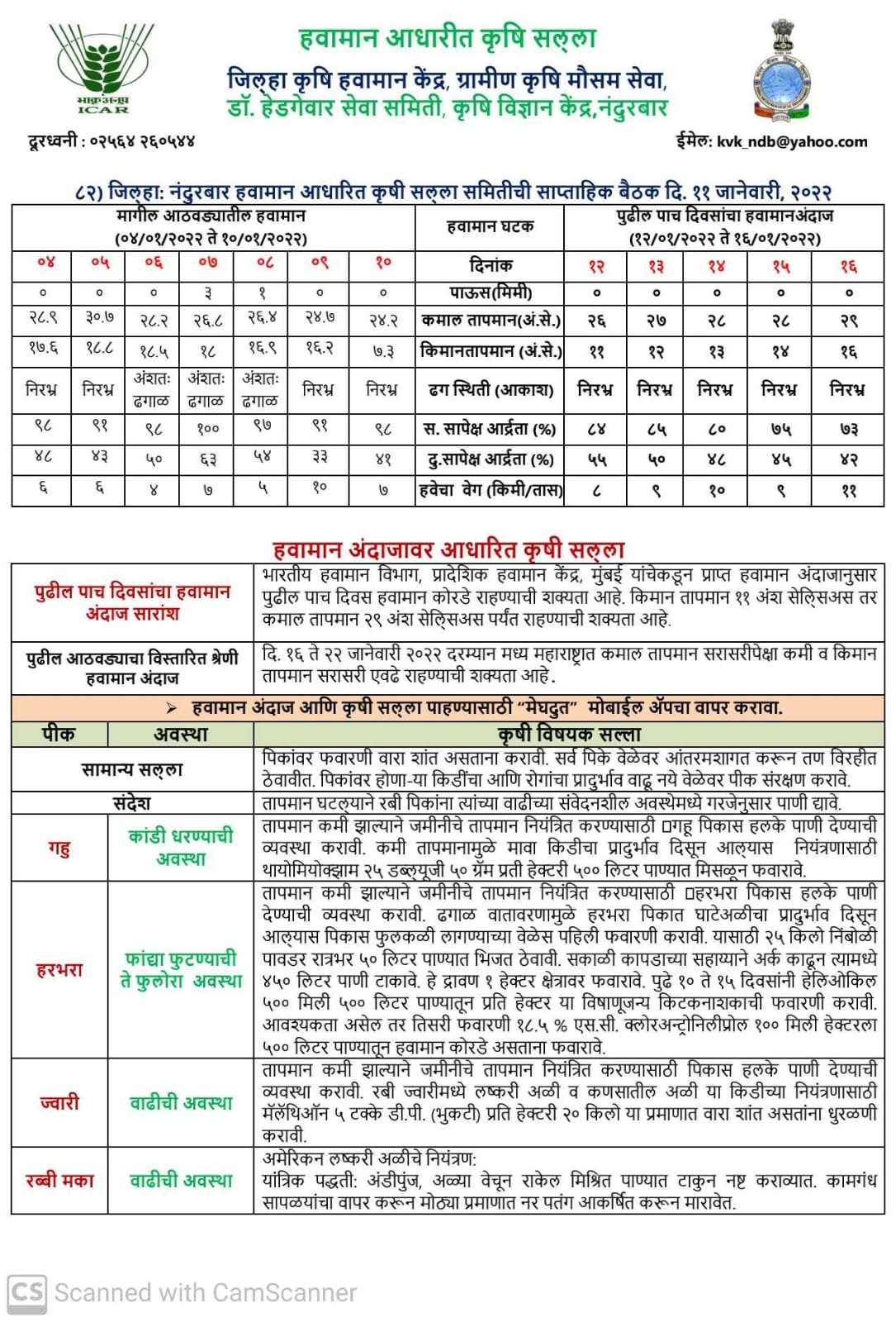 *पिकनिहाय कृषिहवामान सल्ला व पशुपालनाविषयी* माहितीसाठी वरील हवामान आधारित कृषिसल्ला पञिका वाचावी.