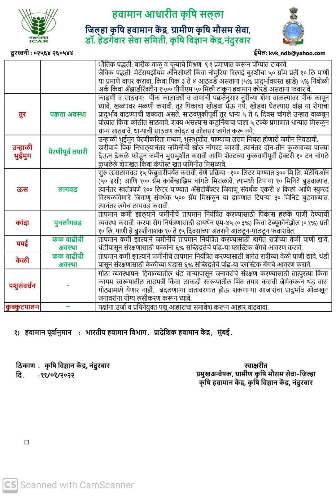 (सौजन्य : जिल्हा कृषि हवामान केंद्र, डॉ. हेडगेवार सेवा समिती, कृषि विज्ञान केंद्र, कोळदा, ता. जि. नंदुरबार)