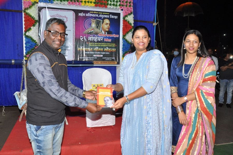 संविधान दिनाचे औचित्य साधून अर्हत प्रतिष्ठानच्या वतीने आयोजित करण्यात आलेल्या कार्यक्रमात उपस्थितांना संबोधीत करताना त्यांनी हे प्रतिपादन केले. खासदार डॉ.हिना गावीत तसेच जि.प.सदस्या डॉ.सुप्रिया गावीत यांनी प्रारंभी बाबासाहेबांच्या प्रतिमेस पुष्पहार अर्पण करुन व संविधानाचे पुजन करून कार्यक्रमाचे उदघाटन केले. कार्यक्रमाचे आयोजक सुभाष पानपाटील यांनी प्रमुख पाहुणे डॉ.हिनाताई गावीत व डॉ.सुप्रियाताई गावीत यांचा सत्कार केला. नंतर संविधानाच्या प्रास्ताविकेचे सामुहिक वाचन करण्यात आले.