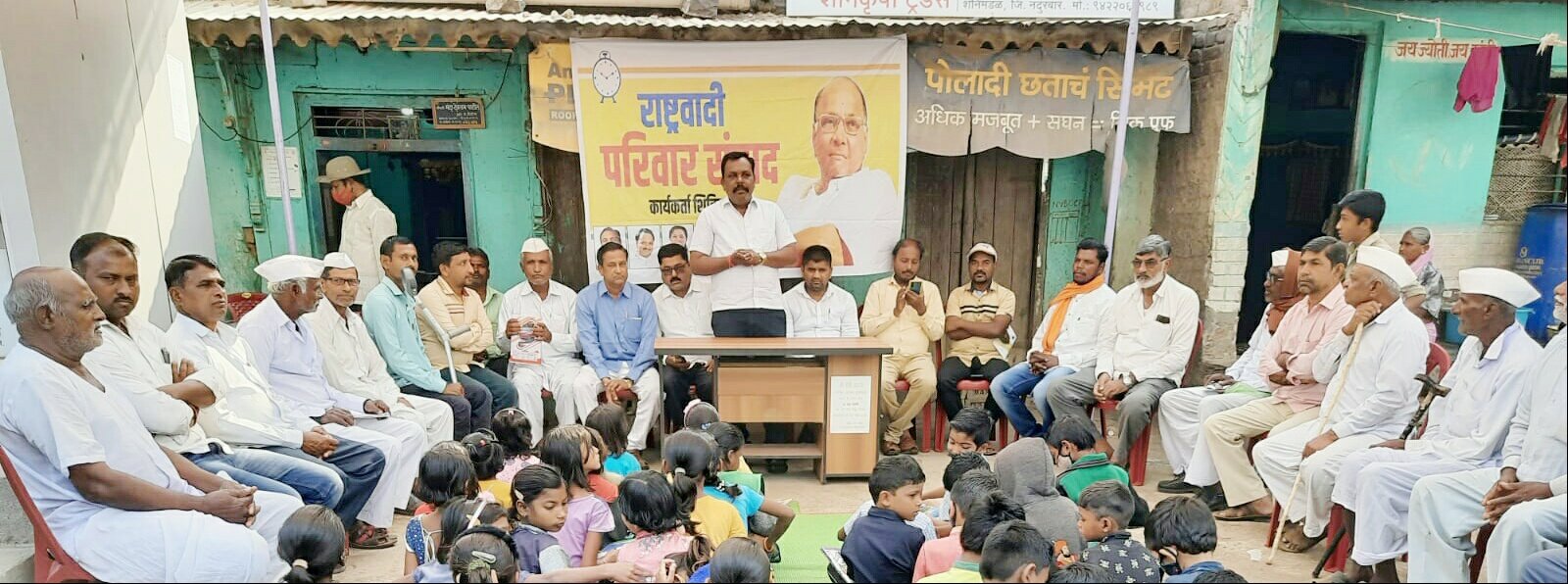 नंदुरबार- राष्ट्रवादी कॉंग्रेसचे संस्थापक अध्यक्ष शरद पवार यांच्या वाढदिवसानिमित्त राष्ट्रवादी कॉंग्रेस पार्टीचे नंदुरबार जिल्हाध्यक्ष डॉ.अभिजीत दादा मोरे यांचे मार्गदर्शनाखाली तालुक्यातील शनिमांडळ येथे परिसंवाद व कार्यकर्ता शिबीर आणि लाभार्थ्यांना विविध योजनांचा लाभ मिळावे, यासाठी अर्ज वाटप कार्यक्रम घेण्यात आला.