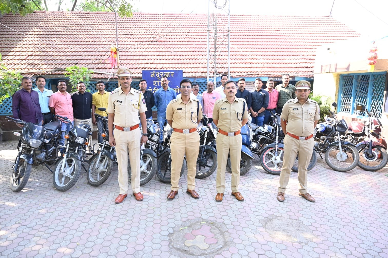 अशाप्रकारे नंदुरबार शहर पोलीस ठाणे हद्दीतील तसेच विविध ठिकाणाहून चोरी केलेल्या वरील वर्णनाच्या व 6,70,000/- रुपये किंमतीच्या एकुण 11 मोटारसायकली हस्तगत करण्यात नंदुरबार शहर पोलीस ठाण्याचे पथकाला यश प्राप्त झाले आहे. तसेच अटक करण्यात आलेले आरोपी यांचे अभिलेख तपासले असता आरोपी नामे 1) विजय अंता पाडवी, वय 22 वर्षे, रा. मटाव ता.कुडा (गुजरात राज्य), याचेविरुध्द यापूर्वी शहादा पोलीस ठाणे येथे 13 गुन्हे तळोदा पोलीस ठाणे येथे 02 गुन्हे, नवापुर पोलीस येथे 102 गुन्हे, शिरपुर पोलीस ठाणे(धुळे जिल्हा) येथे 1 गुन्हा असे एकुण 18 गुन्हे दाखल आहे तसेच आरोपी नामे 2) विनेश लक्ष्मण पाडवी, वय-24 वर्षे, रा. जुन उठावदता कुकरमुंडा जि.तापी (गुजरात राज्य) याचेवर यापूर्वी अक्कलकुवापो ठाणे येथे 1 व शहादा पोलीस ठाणे व 01 गुन्हा असे एकुण 02 गुन्हे दाखल