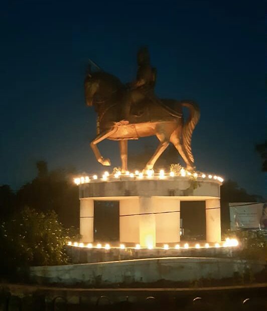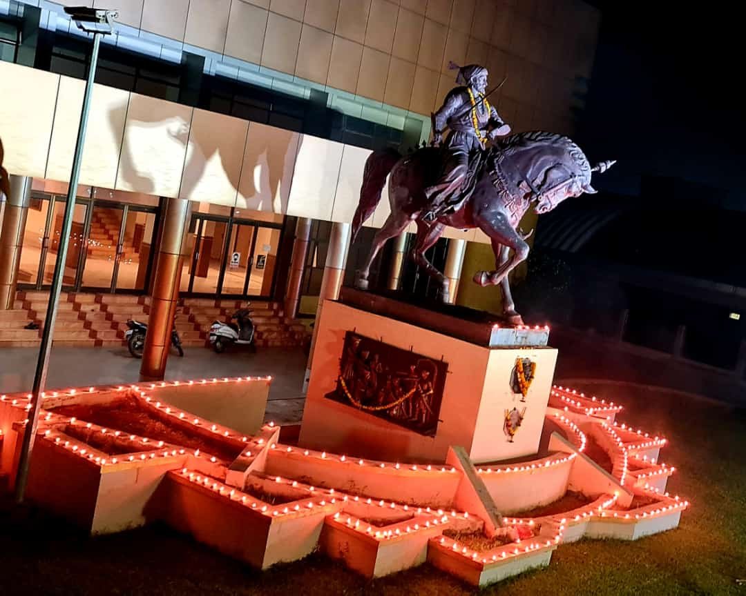 नंदुरबार – 50 अथवा 100 दिव्यांची नव्हे तर तब्बल ५०० दिव्यांची आरास करण्यात आल्याने छत्रपती शिवाजी महाराज व महाराणा प्रताप स्मारक दीपोत्सवाच्या तेजाने न्हाऊन निघाले. दोन्ही स्मारकांवर दीपोत्वामुळे मन हरपणारे दृश्य दिसत होते. कोणताही गाजावाजा न करता शिवप्रेमी तरुणाईने येथे असे ऊपक्रम चालवले आहेत.