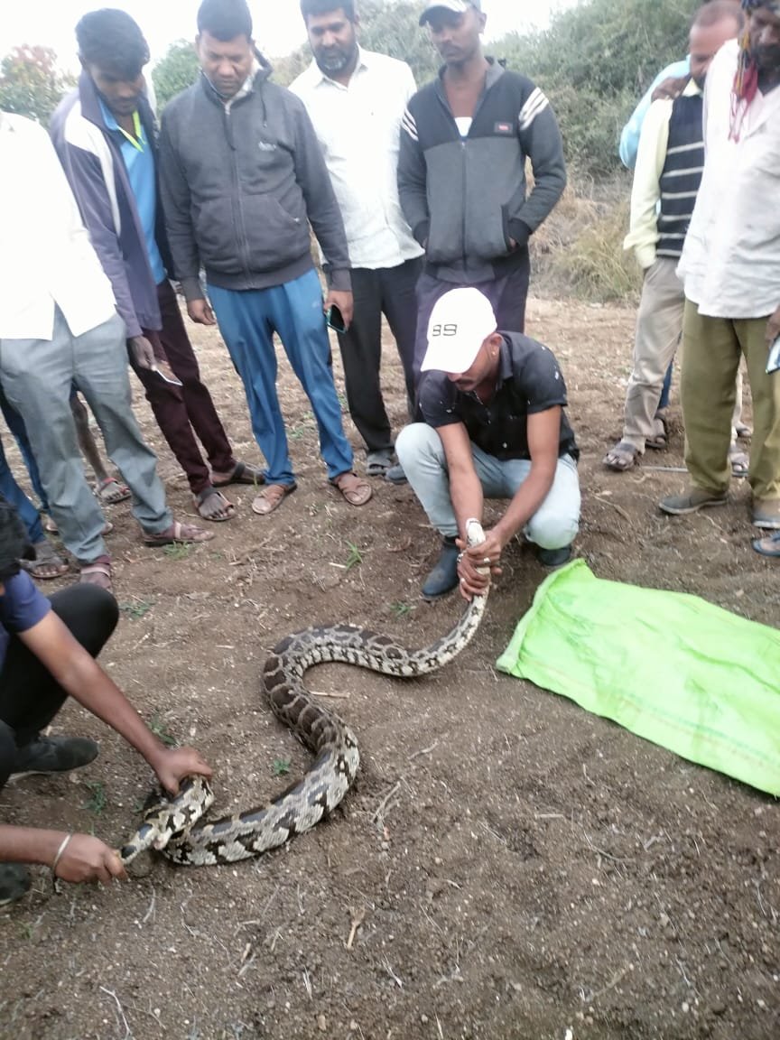 प्राप्त माहितीनुसार शहादा तालुक्यातील मानमोड्या येथील शेतकरी कैलास भिल यांचे गावालगत बागायत शेत आहे. त्या शेतातच ते निवास करून ते रहात आहेत. काल 25 जानेवारी रोजी दुपारी दोन-तीन वाजेच्या दरम्यान शेतातील पिकांना पाणी देण्यासाठी ते विहिरीजवळ गेले. त्यावेळी विहिरीतील पाण्यात हालचाल होत आहे व काहीतरी आवाज येत आहे असे त्यांना जाणवले. निरीक्षण केले असता त्यांना विहिरीतील पाण्यात मोठा अजगर तरंगत असल्याचे दिसून आले. त्यांनी लगेचच ग्रामस्थांकडे धाव घेतली.