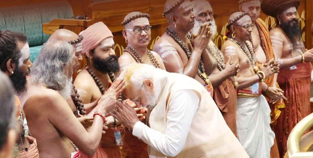 पवित्र सेंगोलच्या स्थापनेचा संदर्भ देत पंतप्रधान म्हणाले की, महान चोल साम्राज्यात सेंगोल हे सेवा कर्तव्य आणि राष्ट्राच्या मार्गाचे प्रतीक म्हणून पाहिले जात होते. ते म्हणाले, राजाजी आणि अधेनाम यांच्या मार्गदर्शनाखाली हे सेंगोल सत्ता हस्तांतरणाचे पवित्र प्रतीक बनले. आज सकाळी आशीर्वाद देण्यासाठी आलेल्या अधेनाम संतांना पंतप्रधानांनी पुन्हा एकदा नमन केले. “हे आमचे भाग्य आहे की आम्ही या पवित्र सेंगोलची प्रतिष्ठा परत मिळवू शकलो. हे सेंगोल सभागृहाच्या कामकाजादरम्यान आम्हाला प्रेरणा देत राहील”, ते म्हणाले.