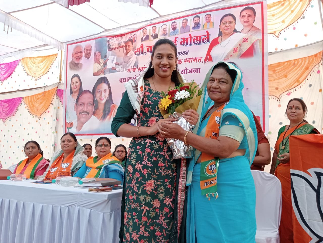 नंदुरबार जिल्हा परिषद अध्यक्ष डॉ सुप्रिया गावित, महाराष्ट्र महिला मोर्चा उपाध्यक्ष वर्षा भोसले, महिला मोर्चा नंदुरबार समनवयक स्वाती भामरे, महिला मोर्चा प्रदेश सरचिटणीस छाया देवांग, महिला मोर्चा प्रदेश उपाध्यक्ष जयश्री अहिरराव प्रमुख पाहुणे म्हणून उपस्थित होते तसेच त्यांच्या समवेत व्यासपीठावर लोकसभा मतदारसंघ प्रमुख सविता जयस्वाल, बेटी बचाव बेटी पढाव च्या नवापूर अध्यक्ष शर्मिला गावित आणि अन्य मान्यवर महिला पदाधिकारी उपस्थित होत्या.