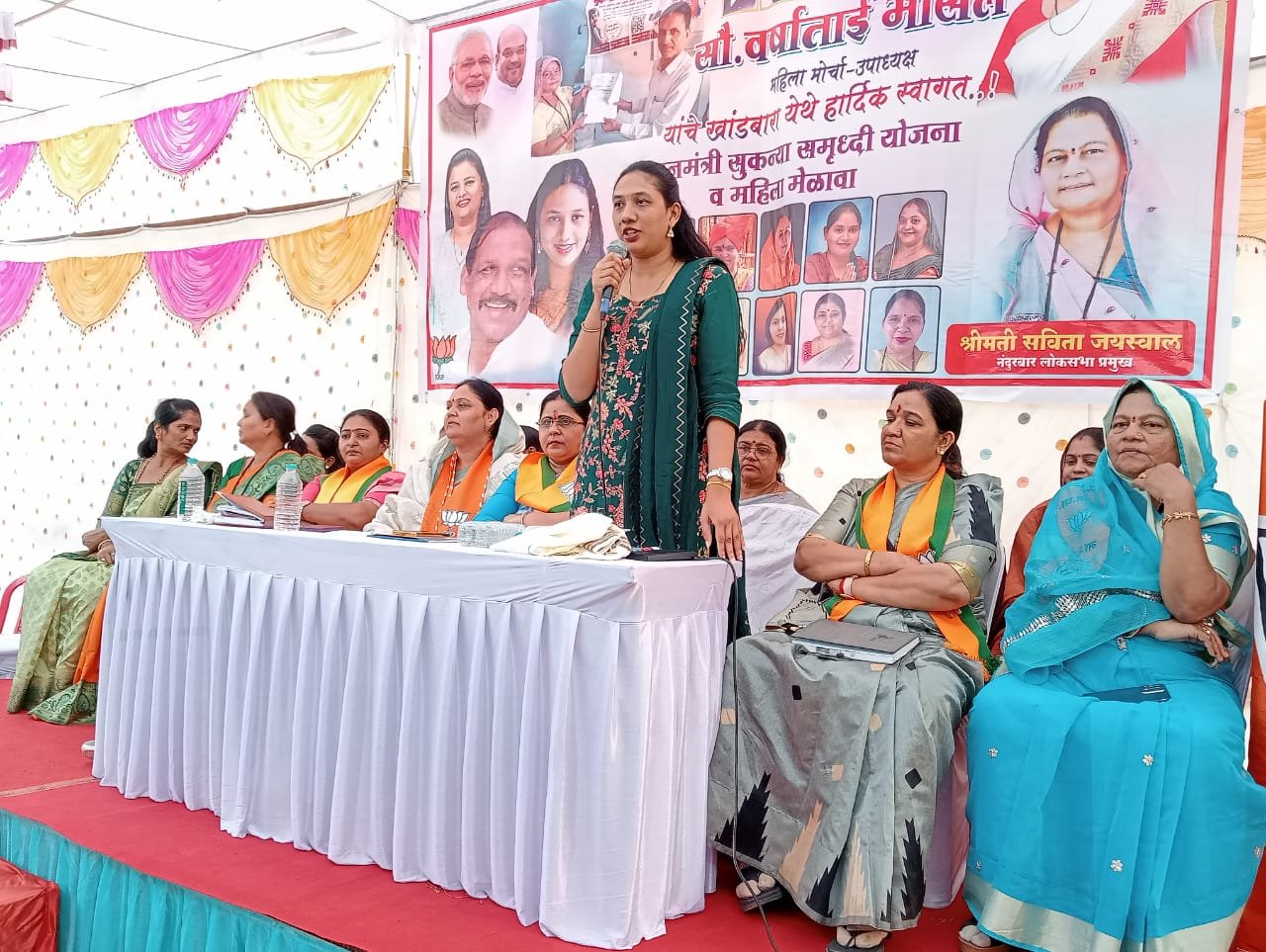 याप्रसंगी प्रमुख भाषणात मार्गदर्शन करताना जिल्हा परिषद अध्यक्ष डॉक्टर सुप्रिया गावित यांनी पंतप्रधान सुकन्या समृद्धी योजनेचे महत्त्व सांगितले. दहा वर्षाच्या आतील सर्व लहान मुलींच्या नावे पोस्ट ऑफिस अथवा बँकेत हे खाते उघडायचे आणि दरमहा हजार रुपये भरायचे पाच वर्षानंतर त्यात जमा असलेल्या रकमेवर जवळपास सव्वातीन लाख रुपये व्याज सरकारकडून मिळते. म्हणजेच पाच वर्षानंतर पाच लाखाहून अधिक रक्कम त्या मुलीला मिळते पुढे त्या रकमेतून अशाच प्रकारची बचत करत गेल्यास मुलींचा शैक्षणिक खर्च भागवणे गरीब कुटुंबांना शक्य होईल मोदी सरकारने प्रत्येक गरीब कुटुंबासाठी आणि महिलांसाठी अशा अनेक योजना सुरू केल्या आहेत त्याचा लाभ आपण घ्यावा असे आवाहन डॉक्टर सुप्रिया गावित यांनी याप्रसंगी केले. महिला मोर्चा उपाध्यक्ष जयश्री अहिरराव आणि अन्य वक्त्यांनी नंदुरबार लोकसभा मतदारसंघ प्रमुख सविता जयस्वाल यांच्या कार्याचे कौतुक केले तसेच मोदी सरकार महिलांसाठी राबवत असलेल्या योजनांची माहिती देऊन मार्गदर्शन केले. मेळाव्याला खांडबारा परिसरातील महिला मोठ्या संख्येने उपस्थित राहिल्या आणि त्यांनी विविध योजनांचे महत्त्व समजून घेतले. कार्यक्रमाचे सूत्रसंचालन राजेश वाघ यांनी केले.