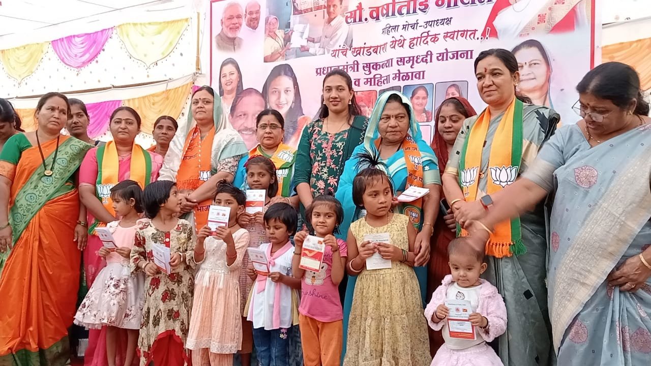 नंदुरबार – नंदुरबार जिल्हा परिषदेच्या अध्यक्षा डॉक्टर सुप्रिया गावित आणि भारतीय जनता पार्टीच्या महिला मोर्चा प्रदेश उपाध्यक्ष वर्षा भोसले यांच्या प्रमुख उपस्थितीत नवापुर तालुक्यातील खांडबारा येथे प्रधानमंत्री सुकन्या समृद्धी योजना आणि महिला मेळावा पार पडला. या मेळाव्यात 100 बालिकांच्या नावे खाते उघडून सुकन्या समृद्धी योजनेत सहभागी करून घेण्यात आले.